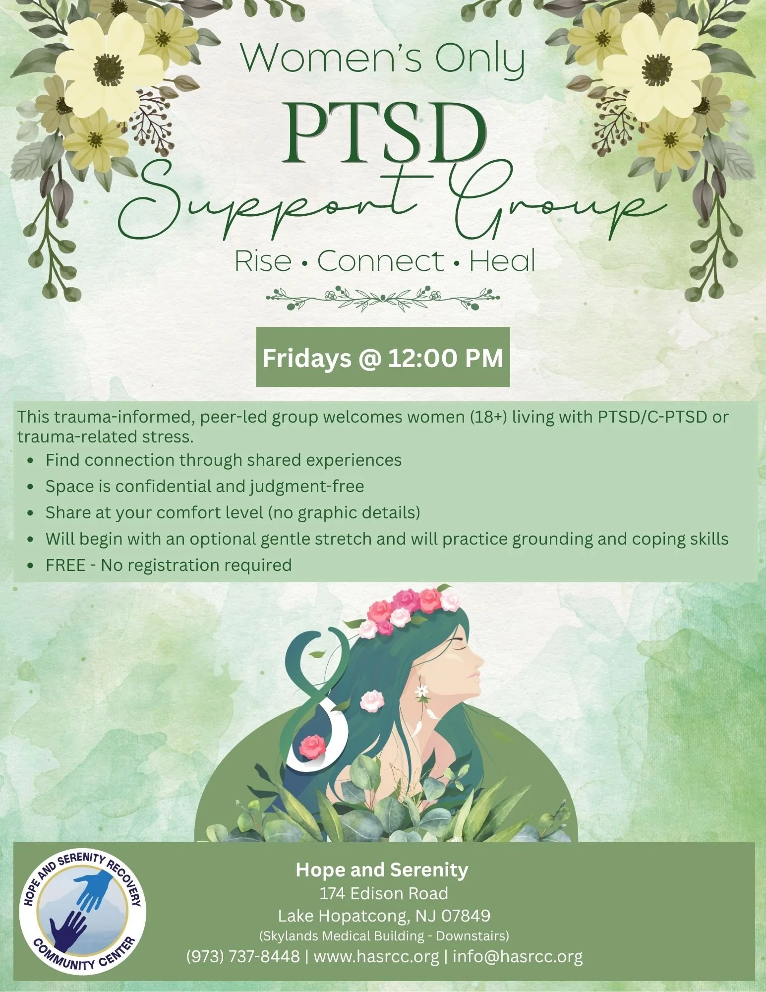 Woman’s Only PTS Trauma Group - Every Friday at 12pm in-person at 174 Edison Rd. Lake Hopatcong, NJ